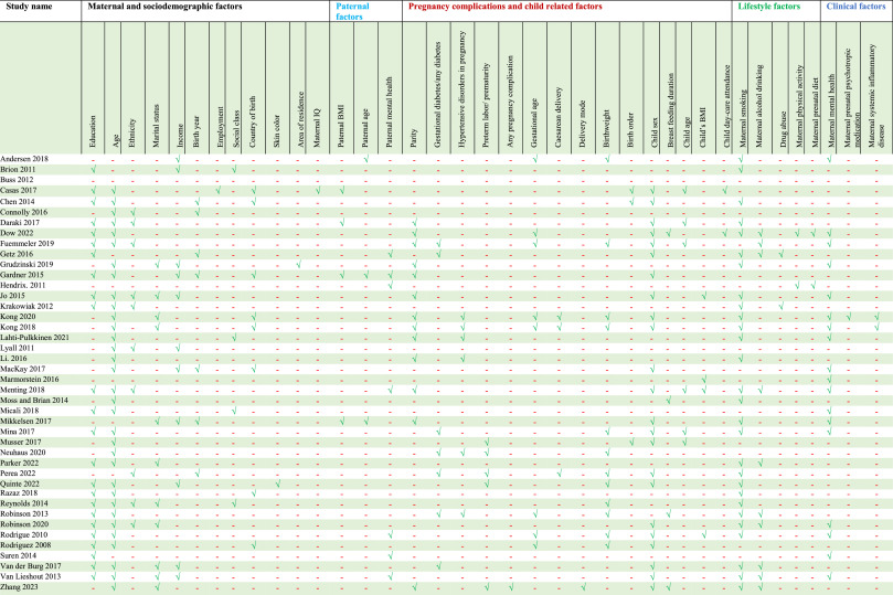 There is one really GLARINGLY OBVIOUS omission in this table… Yup, you guessed it. Maternal autism status. Not only did they not think to account for undiagnosed maternal autism, as I had suspected… They didn’t look for it AT ALL?! (Unless it’s included in the extremely broad category ‘maternal mental health’ which fewer than half the studies considered).